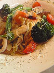アスパラときのことエビのクリームパスタを振る舞いました。